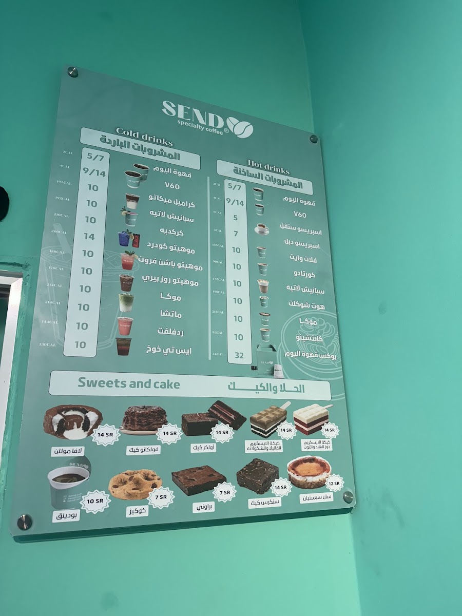 Welcome to Send Coffee, a charming café nestled in the tranquil area of Tuwaiq, Riyadh. This delightful spot is more than just a place to grab your daily dose of caffeine; it's a warm haven for coffee lovers and light bites enthusiasts alike. The inviting ambiance coupled with the aroma of freshly brewed coffee makes it the perfect escape for anyone seeking a moment of relaxation or a cozy catch-up with friends.